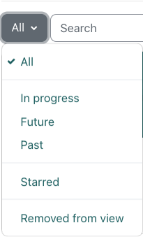 Users also have the option to view modules that are 'in progress, 'future', 'past' or 'starred' by clicking 'All' (which is the default view of modules)on the 'homepage'.
