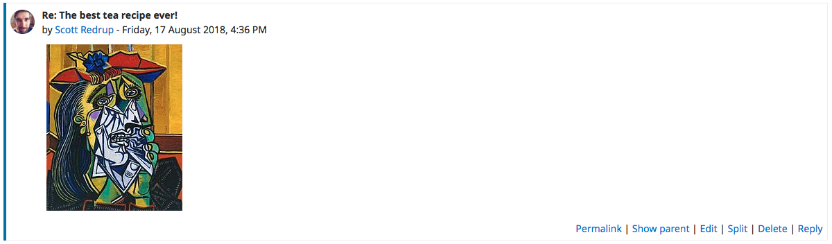 At this point you are still able to amend or delete the reply, this option is only available 30 minutes after posting. At the moment the topic threads are shown in nested form, the dropdown menu at the top of the page allows individuals to view how they wish depending on preference.