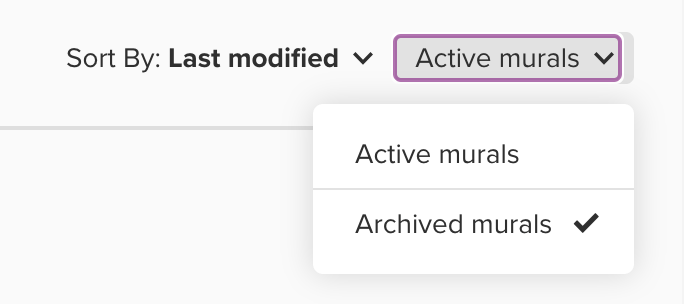 - From, 'Sort By' in the top right side of the screen, apply the ‘Archived murals’ filter view and then any archived murals will appear.